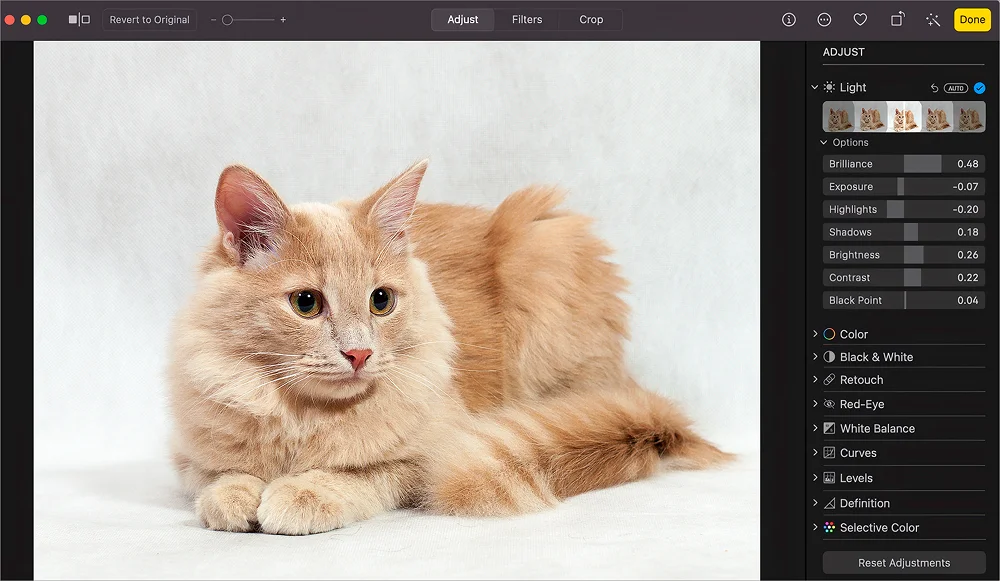 Встроенное приложение для всех устройств Apple предназначено для управления, организации и быстрого редактирования фото. Оно предлагает простой интерфейс и базовые инструменты обработки. Подойдет пользователям, которым не нужно профессиональное редактирование.