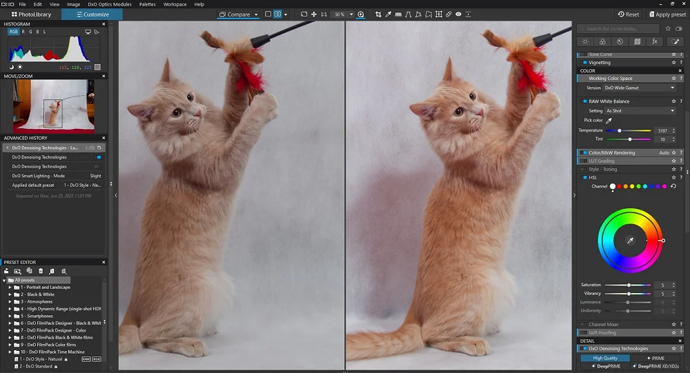 Мощный RAW-редактор ориентирован на профессионалов, ценящих точность и автоматизацию. Фокус сделан на научно-обоснованной коррекции оптических искажений и шумоподавлении — при коррекции учитываются данные о камере и объективе, полученные при лабораторных тестах. Полноценная DAM-система отсутствует, зато возможна прямая загрузка файлов с диска.