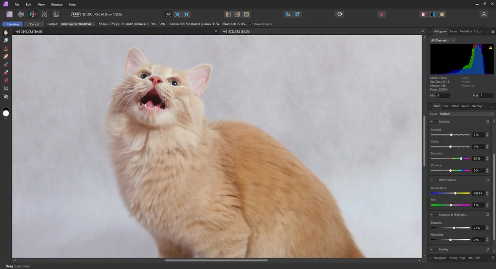 - более 30 продвинутых модулей для улучшения экспозиции, шумоподавления, цветокоррекции,