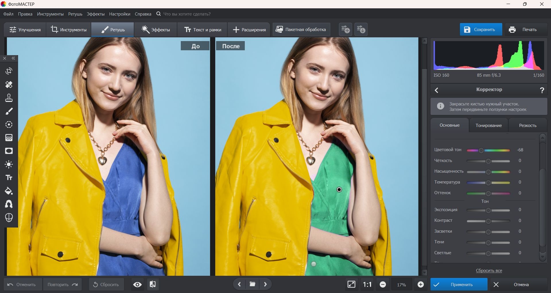 Перекрашивайте любые элементы на фотографиях! Превратить желтый в красный, а зеленый в синий в ФотоМАСТЕРЕ не составит никакого труда. Так вы сможете легко преобразить автомобиль на снимке, поэкспериментировать с оттенком волос, изменить цвет одежды на фото или любых других объектов в кадре.