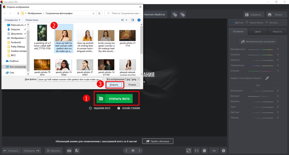 - Нажмите кнопку «Открыть фото» и выберите нужный снимок.