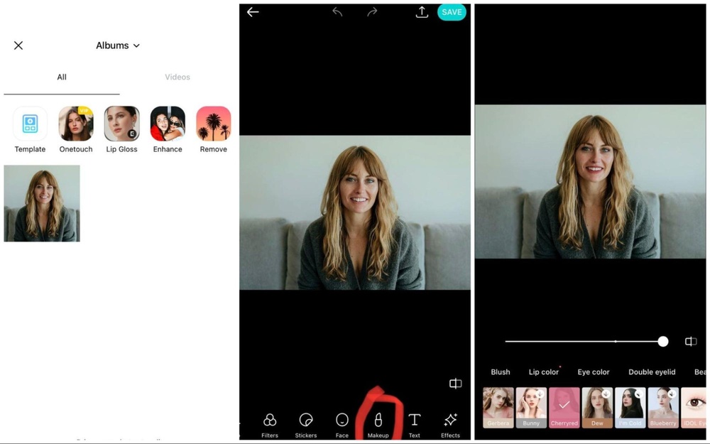 - Откройте приложение. Сделайте фото или нажмите «Makeup». Во втором случае выберите файл с картинкой для обработки.