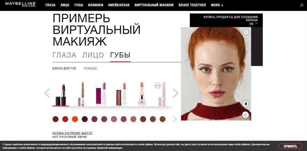 - Виртуальный макияж от Maybelline — сервис для подбора косметики для тех, кто мечтает