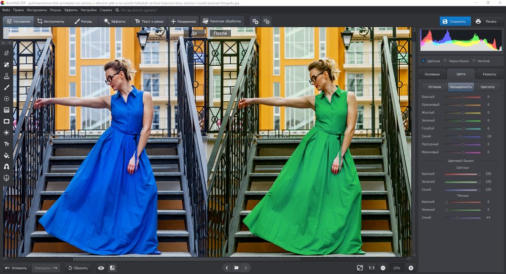 ФотоМАСТЕР предлагает три способа для перекрашивания вещей. Рассмотрим подробнее каждый из них. Попробуйте бесплатно прямо сейчас:
