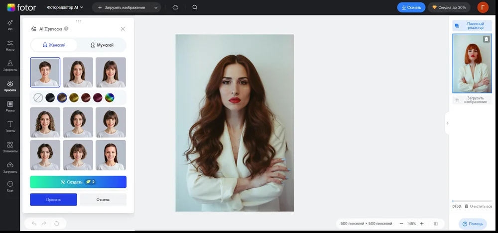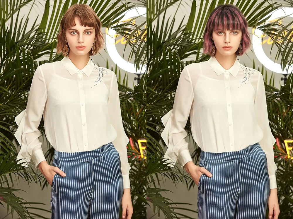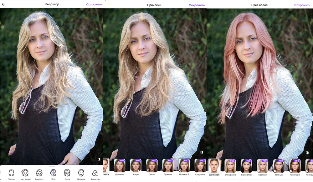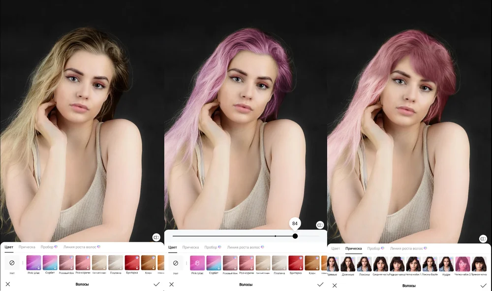 Десктопные редакторы — это оптимальное решение для бьюти-экспериментов. В них можно самостоятельно выбирать оттенки, не ограничиваясь предустановленными шаблонами. Дополнительный плюс — благодаря корректировке вручную возможна работа с портретами в профиль или вполоборота, чтобы оценить, как будет выглядеть прическа с разных ракурсов.