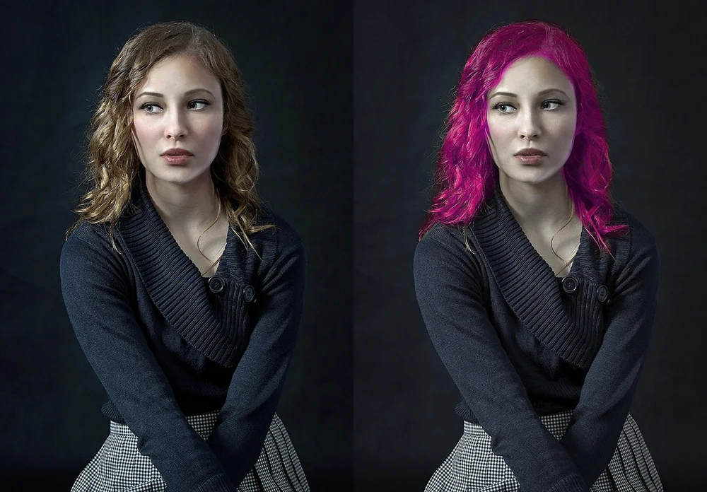 - цветовая коррекция любых элементов изображения: волос, глаз и т. д.;