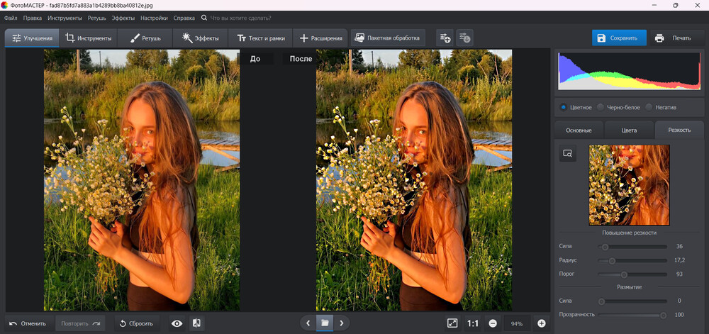 - ФотоМАСТЕР — мощный редактор, предлагающий разные варианты улучшения резкости.