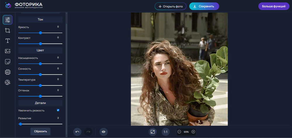 - Фоторика — простой редактор для экспресс-обработки в режиме онлайн.
