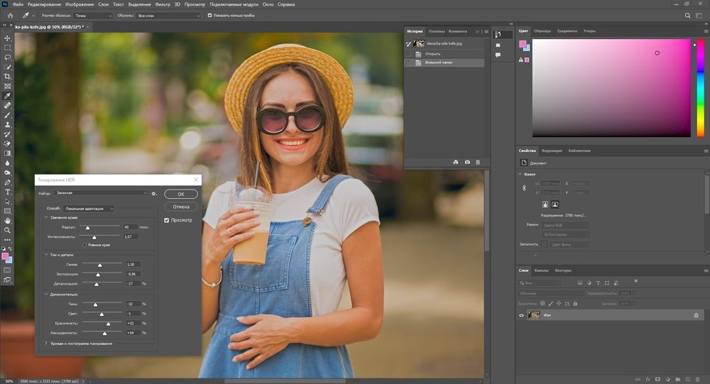 - Цветокоррекция, в том числе HDR, грейскейл, уровни, кривые