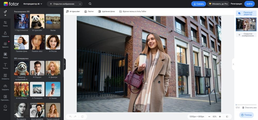 | Fotor | Веб, Windows, macOS, iOS, Android | Бесплатно / Платно (Pro) | Есть | Нет | Есть |