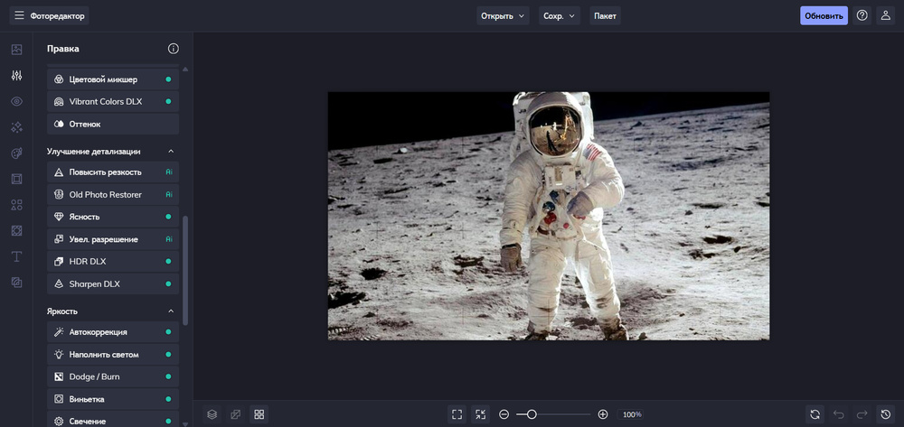 Универсальный и легкий в освоении редактор на русском языке для улучшения фотографий в ручном или автоматическом режиме. Предлагает большой набор интеллектуальных AI-функций и может использоваться для ретуши портретов, обработки пейзажных фото, создания фотоколлажей, графического дизайна и многого другого. Крупный выбор профессиональных опций вкупе с удобным управлением делают ФотоМАСТЕР отличным выбором для пользователей любого уровня. Фоторедактор совместим с Windows 7, 10, 8, Vista, ХР.
