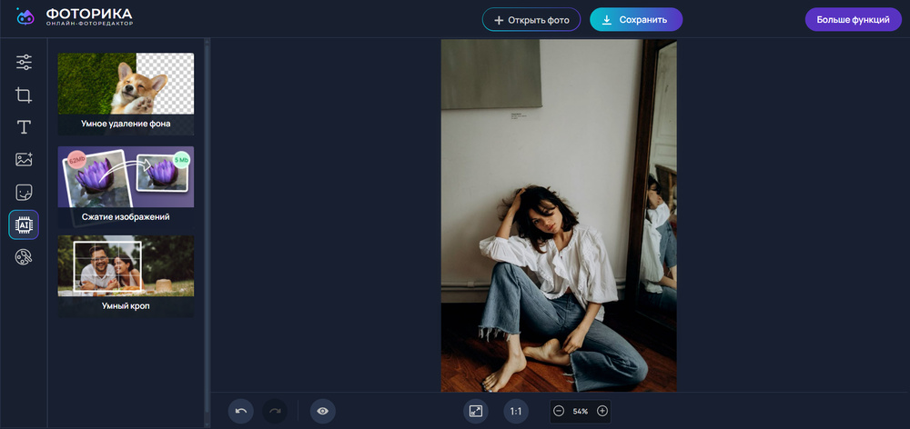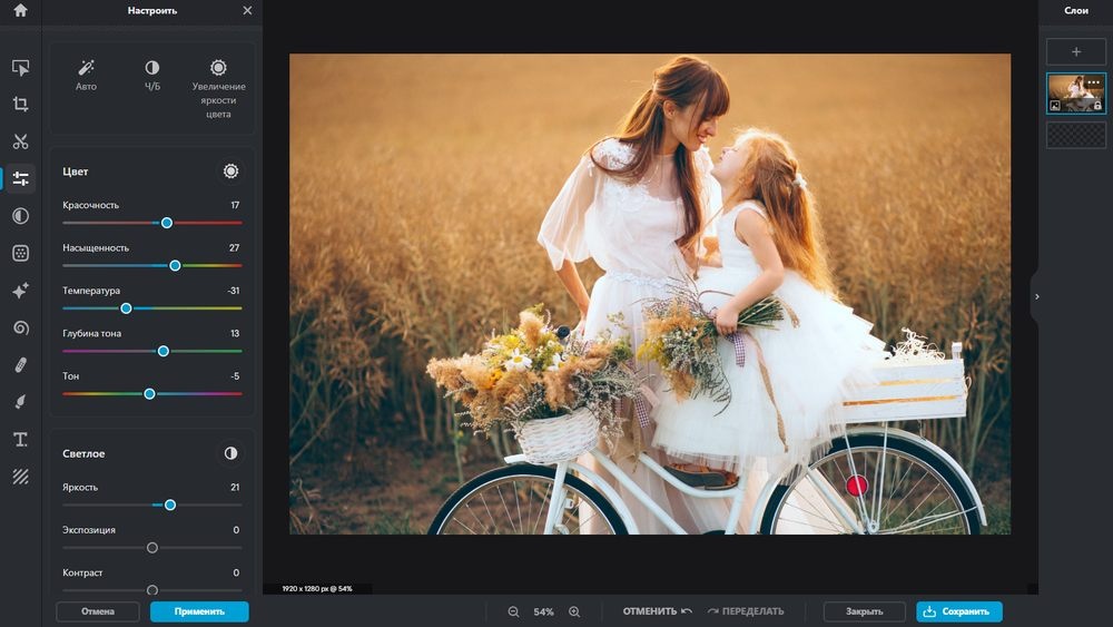 Онлайн-сервис работает со всеми типами цифровых снимков, в том числе RAW практически всех моделей камер. Запоминает изменения и позволяет продолжать работу в любое время.