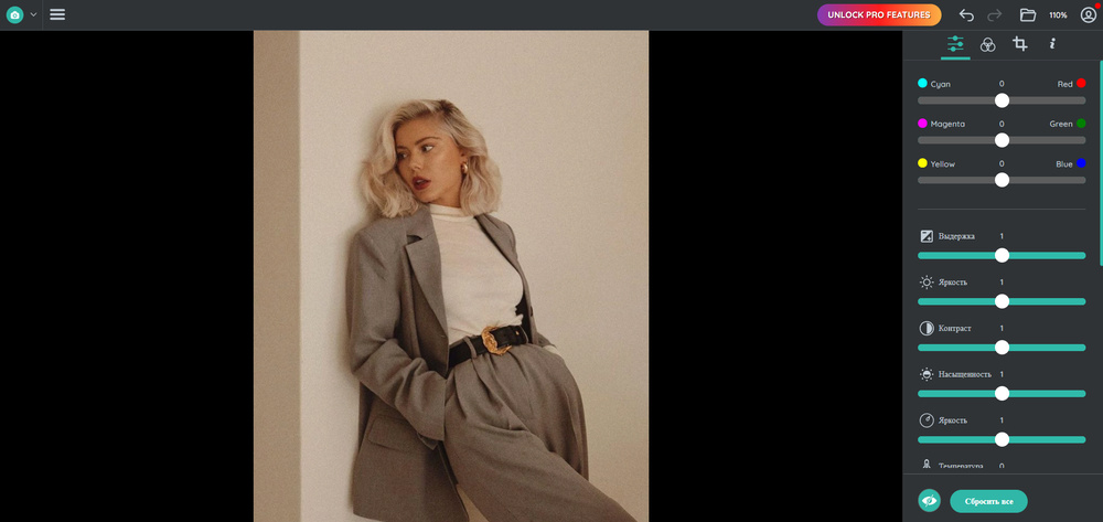 - Базовая настройка экспозиции, яркости, теней и пр.