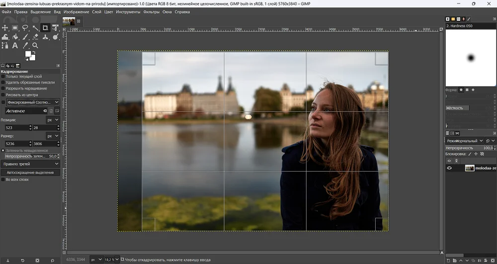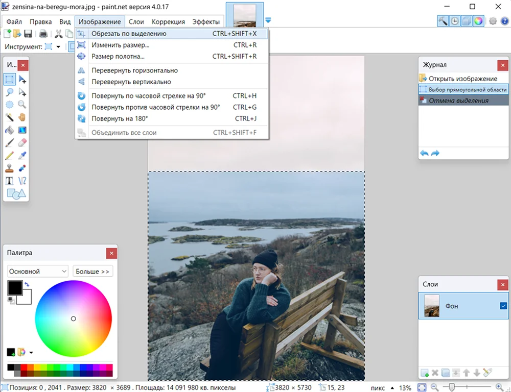 Еще один вариант, который можно использовать в качестве программы для обрезки фотографий на компьютере. Но это лишь малая часть всех возможностей. Здесь можно делать цветокоррекцию, оформлять коллажи и сложные фотоманипуляции вроде двойных экспозиций. Освоить программу сложно, тем более что в разных сборках меню отличается.