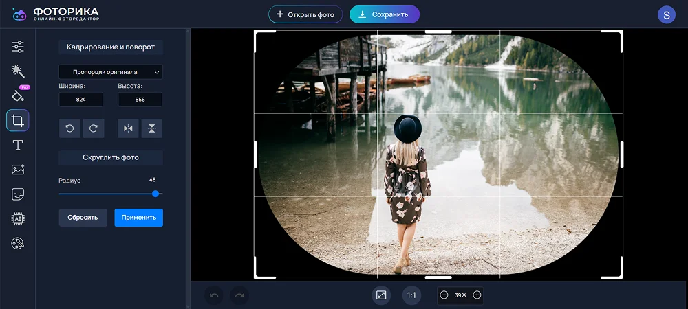 Приложение для обрезки фото на ПК, которое имеет также онлайн-версию. ПО насчитывает более 100 разнообразных инструментов, в числе которых интеллектуальные, ориентированные на ретушь кожи и пластику. Основную коррекцию можно провести бесплатно, но многие фильтры и продвинутые возможности становятся доступны только после покупки PRO-аккаунта.