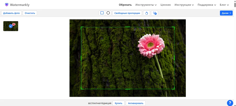 - Свободные или фиксированные пропорции кропа.