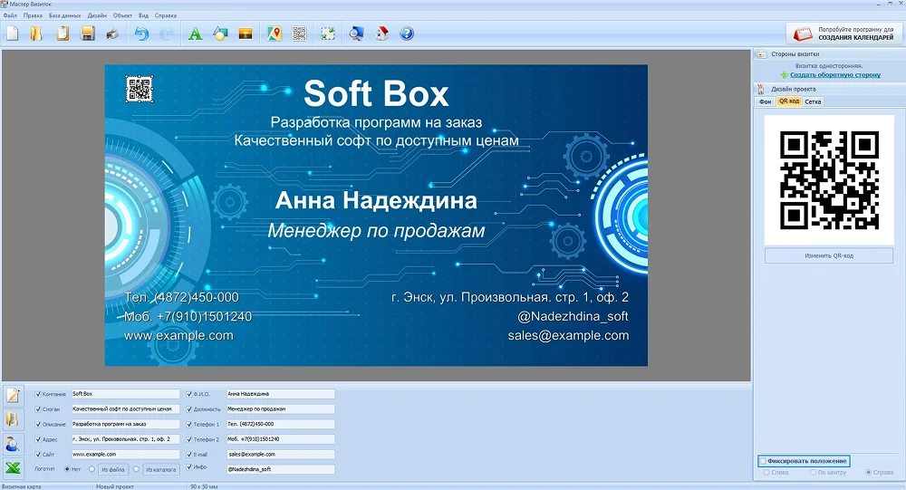 - Мастер Визиток — программа для создания бизнес-карт, бейджей, сертификатов.
