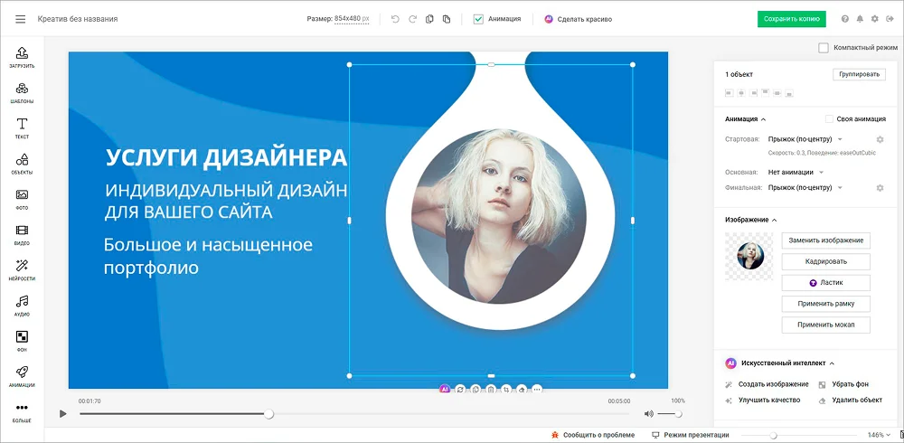 - на платформе есть инструменты для генерации фонов с помощью ИИ;