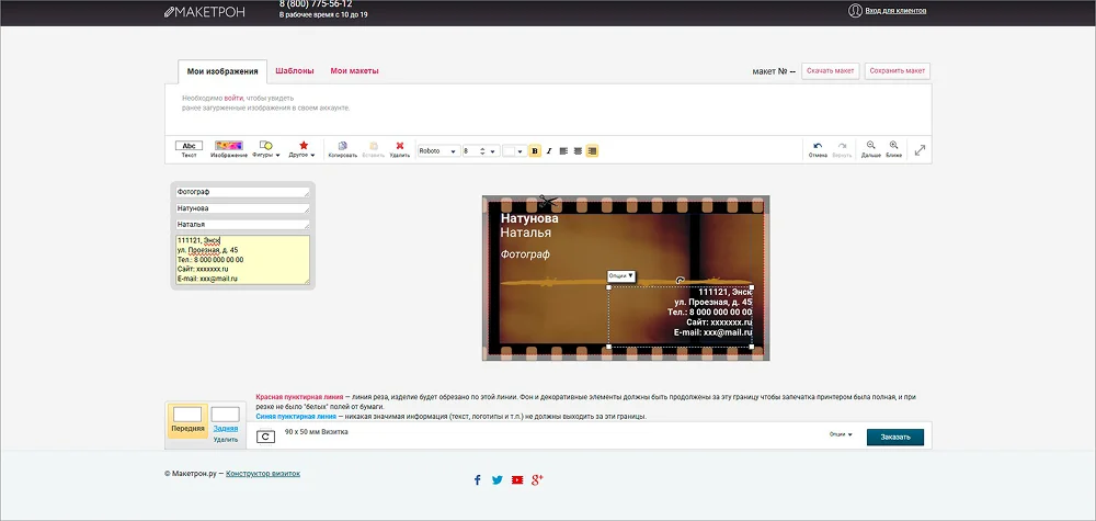 - экспорт в PDF-формат для отправки макета на распечатку.