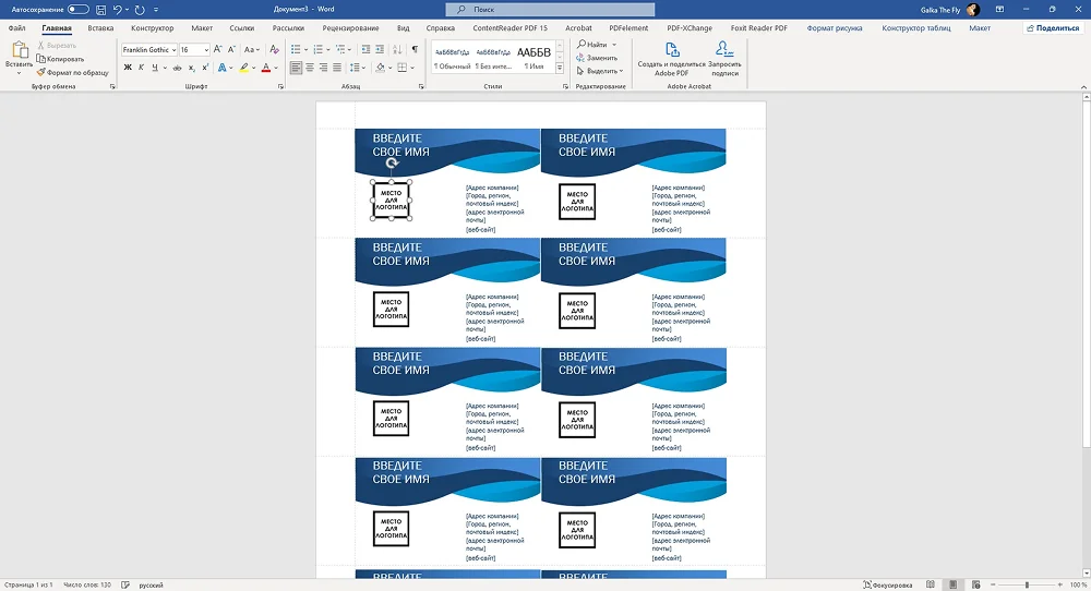 Шаблоны: небольшой набор образцов визитных карточек, презентаций, резюме и др.