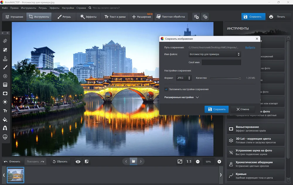 ФотоМАСТЕР — не просто фоторедактор, а инструмент, который позволяет сжимать с минимальными потерями качества. При сохранении можно самостоятельно выбрать формат и сравнить исходный вариант с результатом. Удобно, когда необходимо подготовить много визуала для сайта или архива.