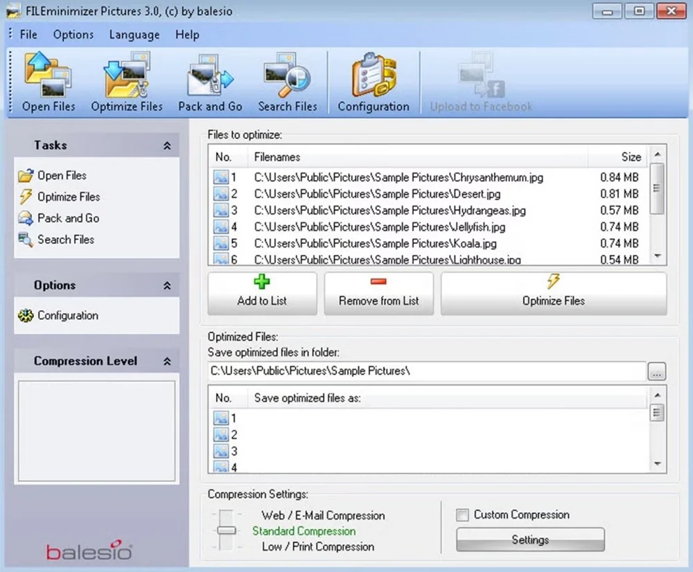Caesium предназначен для тех, кто ищет простоту и эффективность. ПО фокусируется исключительно на работе с картинками: вы выбираете степень облегчения, и оно показывает, сколько мегабайт удастся сэкономить. При этом снимки практически не меняются — алгоритм минимизирует потерю детализации.