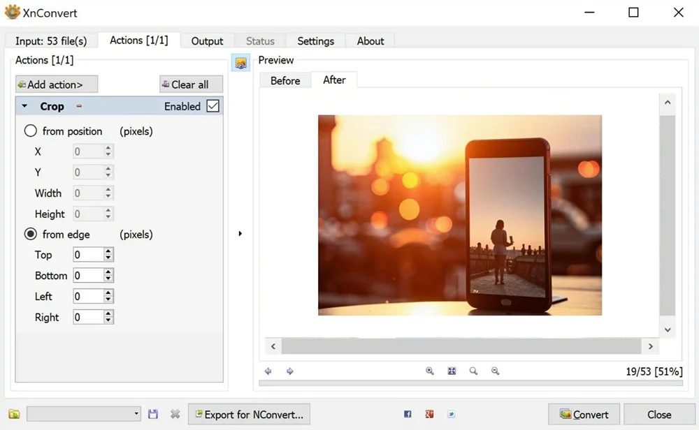 XnConvert — кроссплатформенный инструмент, созданный для автоматической обработки. Использует сотни форматов, сжимает и преобразовывает. Например, можно изменить объем, обрезать, повернуть, наложить вотермарк и скорректировать цветовую схему. Программа идеальна для профессиональных задач: легко задать сценарий, сохранить его как шаблон и применять каждый раз к новым проектам. Есть фильтрация по метаданным и автоудаление исходников.