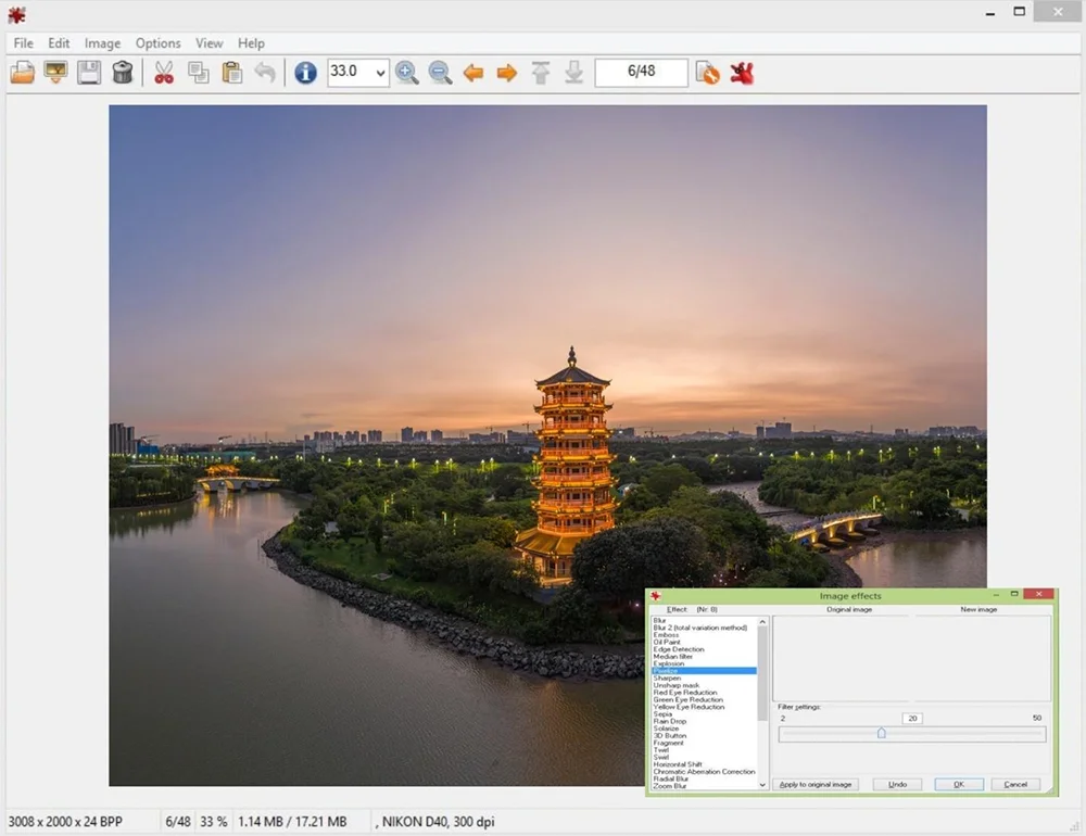 RIOT — программа для уменьшения размера фото, которая оптимизирует картинки для веба и хранения. ПО предлагает ручную регулировку характеристик, в том числе выбор цветовой палитры, стирание метаданных. Еще одна особенность — синхронный просмотр оригинала и ужатого варианта рядом.