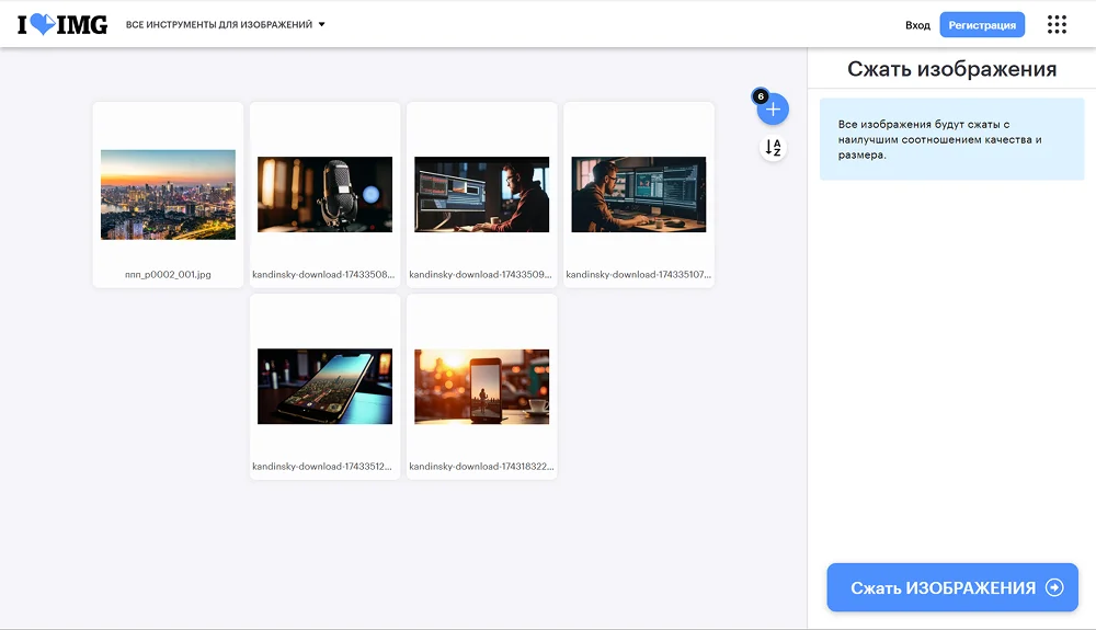 ILoveIMG — онлайн-сервис, ориентированный на работу с фотоматериалами. Перемещаете картинку или серию изображений — и сервис уменьшает их, сохраняя разрешение и пропорции. Процент компрессии настраивается автоматически и не требует технических знаний.
