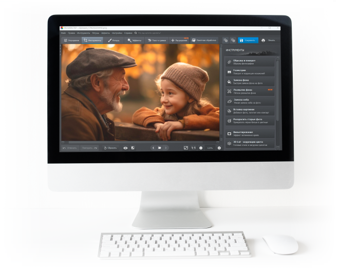 С помощью сервиса можно вырезать фон, заменить его другим изображением или оставить прозрачным. Для обработки результата потребуется фоторедактор. Например, отлично подходит ФотоМАСТЕР. Работать в нем также легко, т.к. есть функции автоматического улучшения и ретуши снимков.